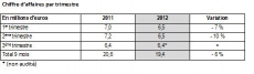 Au troisième trimestre 2012, le français Egide, spécialiste des boîtiers hermétiques pour produits sensibles, a réalisé un chiffre d’affaires (non audité) de 6,4 millions d’euros, stable par rapport au troisième trimestre 2011 et en recul de 1,5% par rapport au deuxième trimestre 2012.