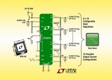 Concrètement, le LTC3375 comprend huit régulateurs DC-DC synchrones, abaisseurs de tension, susceptibles de délivrer chacun 1 A. A ces éléments s’ajoute un LDO de 25 mA.