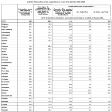 Parmi les entreprises ayant mené des activités innovantes en termes de produits et de procédés entre 2008 et 2010, 27% ont coopéré avec d’autres entreprises, des universités ou des instituts publics de recherche, tandis que les autres 73% ont utilisé uniquement leurs ressources internes.