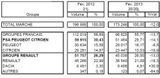PSA Peugeot Citroën et Renault ont reculé de respectivement -15,5% et -10,8%. Les constructeurs allemands ont mieux résisté sur le marché français, le Groupe Volkswagen affichant des volumes en repli de 7,5% et BMW -2,7%.