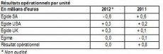 Le résultat opérationnel du groupe a été proche de l’équilibre alors qu’en 2011, Egide avait réalisé un bénéfice d’exploitation de 0,8 M€.