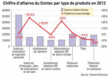 Les chiffres du Simtec, le syndicat français de la profession, montrent que derrière une croissance de 5,1% des chiffres d’affaires cumulés de ses membres en 2012, se cachent des disparités. Lors d’une conférence de presse donnée hier 23 avril, le Simtec (Syndicat de l’instrumentation de mesure, du test et de la conversion d’énergie) a indiqué que le marché français du test et de la mesure a connu une croissance de 5,1% en 2012, pour atteindre 333,1 millions d’euros. C’est la 3è année consécutive de hausse après celles de 9,4% en 2011 et de 7,2% en 2010. Rappelons ici que ces chiffres correspondent aux ventes annuelles cumulées des adhérents du Simtec qui ont bien voulu répondre à l’enquête du syndicat et qui représentent environ 80 % du marché français du test et de la mesure.