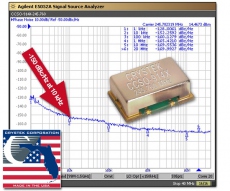 Œuvre de Crystek, le CCSO-914X-245.760 est caractérisé par un bruit de phase de -150 dBc/Hz à 10 kHz de la fréquence centrale. Crystek annonce la réalisation d’un oscillateur d’horloge à la fréquence de 245,760 MHz, exploitant un résonateur à ondes acoustiques de surface (SAW, Surface acoustic wave).