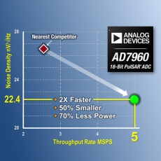 Parallèlement, l’américain introduit l’AD7961, à 5 Méch./s également, mais dont la résolution est limitée à 16 bits.