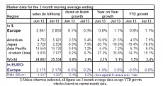 Par rapport à juin 2013, elles ont progressé de 0,3% en dollars en juillet dernier et de 0,2% en euros. Elles ont résisté à la dépression, mais on est loin des très bons chiffres observés sur le marché américain où l’on note une progression de 21,5% par rapport à juillet 2012, marquant la plus forte augmentation annuelle dans cette région du monde depuis plus de deux ans, et de 5,4% par rapport au mois précédent).