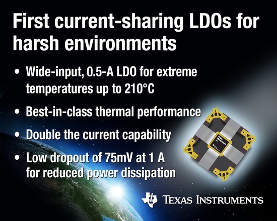 Conçus pour les environnements sévères, les TPS7H1101-SP et TPS7H1201-HT de Texas Instruments sont des régulateurs de tension linéaires (LDO) dont l’originalité est de disposer chacun d’une fonction de partage de courant. Cela permet de disposer deux régulateurs en parallèle, afin de délivrer un courant dont l’intensité doublée est équitablement partagée.