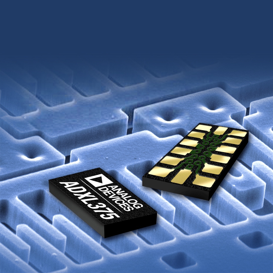Analog Devices lance un accéléromètre triaxial +/-200 g consommant 140 µA dans une bande passante de 1,6 kHz.
