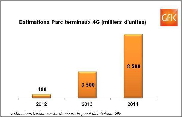 D’ici la fin 2013 en France, GfK Consumer Choices prévoit la vente de près de 16 millions de Smartphones dont 3 millions seront dotés de la 4G (20% des quantités écoulées). En l’espace d’une année seulement, les ventes de terminaux compatibles 4G ont été multipliées par 6, selon la société d’études.