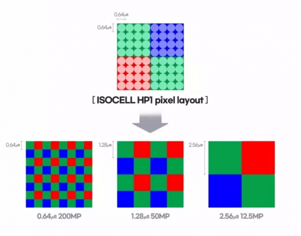 200 millions de pixels dans un imageurs dédié aux smartphones ! Samsung s’est appuyé sur des photosites de 0,64µm de côté pour accomplir cet exploit au sein de l’Isocell HP1. Outre l’obtention d’une définition inédite dans les scènes correctement illuminées, cet frénésie de photosites permet au Sud-Coréen de mettre en oeuvre une technologie dite ChameleonCell consistant, en cas de faible luminosité, à adapter le nombre de photosites voisins qui seront agglomérés en un seul pixel virtuel. Par exemple, le HP1 peut se comporter comme un imageur à 12,5 millions de pixels en groupant 4×4 photosites pour simuler des pixels de 2,56µm. En utilisant des blocs de 2×2 photosites, l’imageur peut capturer des vidéos 8K à 30 images/seconde.