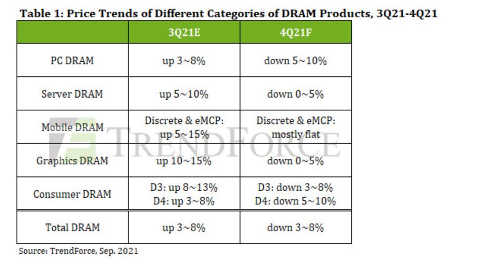 Les clients sur les marchés finaux ayant un stock de Dram plus élevé, ils seront moins disposés à en acheter prochainement. C’est pourquoi les prix de Dram devraient baisser entre 3 et 8% au 4e trimestre en comparaison au trimestre précédent.