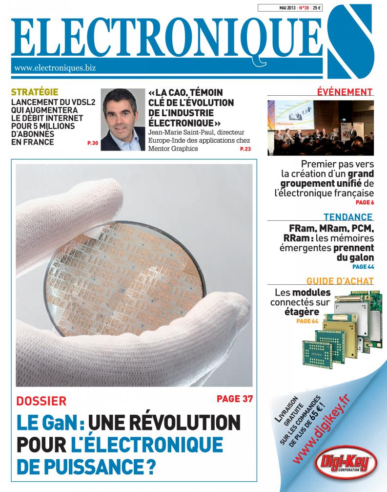 38 Le gaN veut sortir des marchés de niche Hors optoélectronique, le nitrure de gallium est un matériau composé, dont l’utilisation est encore essentiellement circonscrite au secteur militaire. Cependant, la situation va évoluer avec une demande croissante émanant des applications CaTv, des infrastructures cellulaires 3g/4g et des