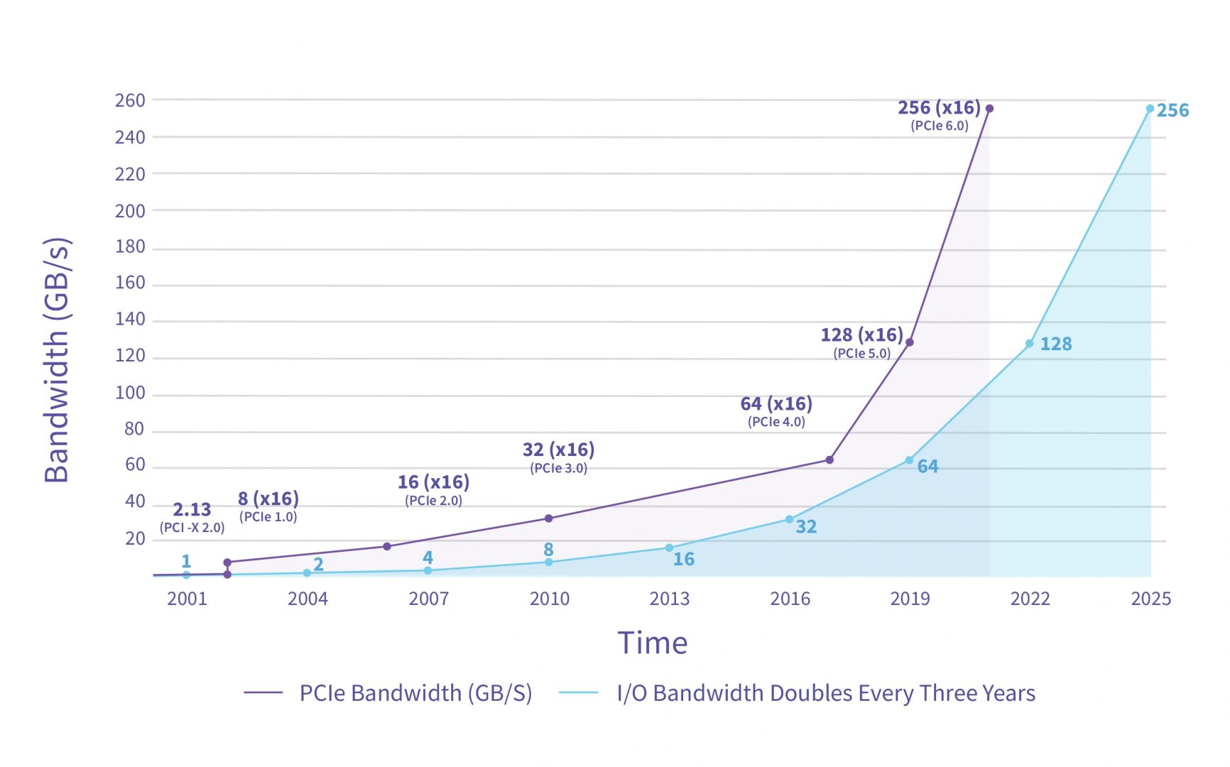 Le PCI-SIG, l’organisation qui gère le standard PCI Express (PCIe), vient d’entériner la version finale de la spécification PCIe 6.0, trois ans après la précédente génération. Celle-ci promet un débit de données brut de 64 Gtransferts/s (deux fois plus que le PCIe 5.0), soit 256Go/s en configuration x16. Elle repose sur une modulation PAM4 avec correction d’erreurs FEC et vérification de redondance CRC : il s’agit donc d’une réelle transformation par rapport aux normes PCIe 3, 4 et 5 qui exploitaient une modulation NRZ moins performante mais plus simple.