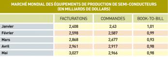 Depuis janvier 2012, les commandes et les facturations mondiales d’équipements de production de semi-conducteurs enregistrent des croissances régulières.