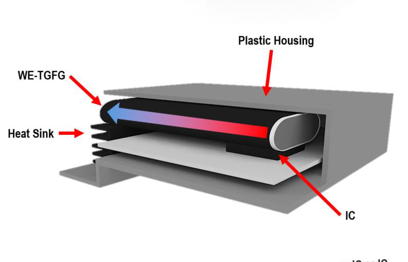 Enfin, le fournisseur évoque la feuille de graphite WE-TGS, qui présente une conductivité thermique allant jusqu’à 1800W/m.K sur l’axe horizontal. Quant à la WE-TGFG, il s’agit d’une variante spéciale de tampons en mousse enveloppés d’une feuille de graphite. Elle est « utilisée pour la conduction thermique lorsque les tampons en silicone ne conviennent pas ou lorsque des formes dimensionnellement stables et individuelles sont requises ». Techniquement, les corps WE-TGFG « évacuent aussi la chaleur latéralement – une tâche pour laquelle des caloducs en cuivre seraient autrement nécessaires », cite Würth Elektronik.