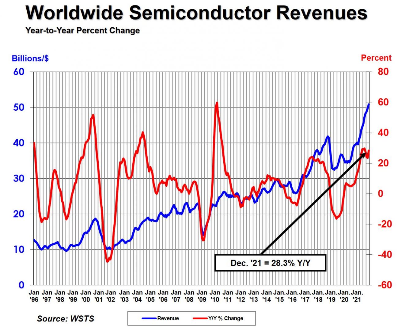 Les ventes mondiales de semi-conducteurs et les unités livrées ont atteint des sommets en 2021