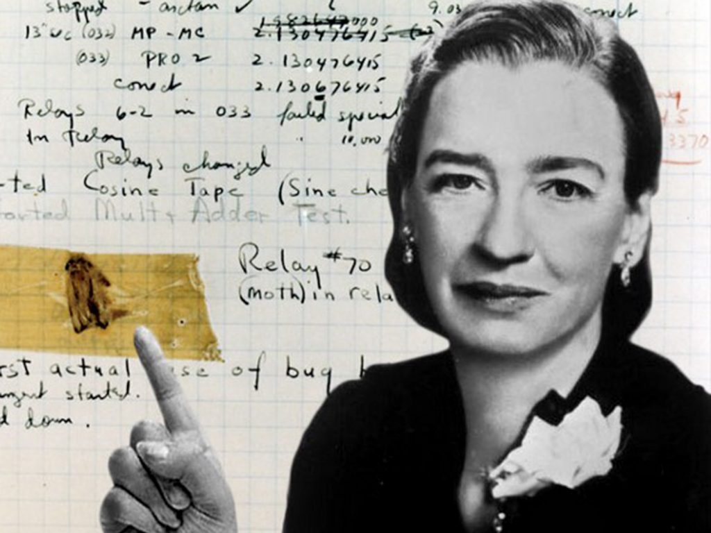 Un jour, Grace Hopper constata que son ordinateur fonctionnait mal. Lorsque son équipe tenta de déterminer l’origine du problème, elle découvrit qu’un papillon de nuit était venu se coincer dans l’un des relais. Une fois l’insecte (« bug » en anglais) retiré, l’ordinateur retrouva son fonctionnement normal. Hopper fit alors remarquer qu’ils avaient « dé-buggé » le système, inventant du même coup une expression technique toujours utilisée aujourd’hui.