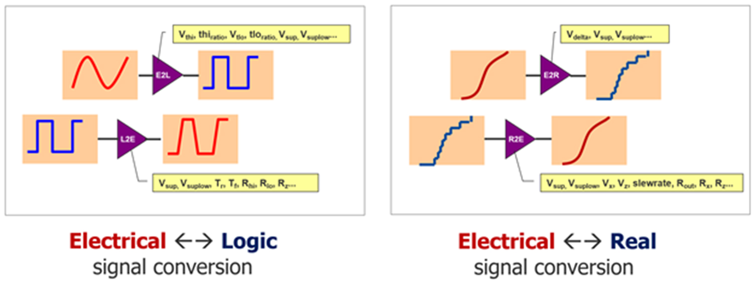 Dans une conception, lorsqu’un bloc RNM interagit avec un bloc logique standard, une conversion du signal se produit. Le solveur numérique insère des éléments de frontière « réel vers logique » et « logique vers réel ». Il en va de même dans le cas d’une simulation de signaux mixtes lorsque SPICE interagit avec des blocs logiques ou RNM. Le simulateur de signaux mixtes insère un élément de frontière « électrique à réel » ou « électrique à logique ». À mesure que la conception et sa hiérarchie se complexifient, le nombre d’itérations augmente, ce qui complique le débogage de ces conversions de frontières.
