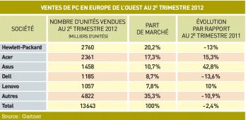 L e marché des PC a atteint 13,6 millions d’unités en Europe de l’ouest au 2 e trimestre 2012,