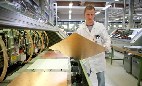 « Nous forons à travers le noyau du PCB à l’intérieur et à l’extérieur de l’anneau. Les trous sont ensuite plaqués de cuivre et reliés par des traces en dessous et au-dessus de l’anneau magnétique, créant un électroaimant intégré », détaille Gerald Weidinger. Partant, des milliers d’éléments de ce type peuvent être produits en parallèle sur un seul panneau, ce qui autorise un contrôle qualité automatisé et une fiabilité supérieure des éléments magnétiques. AT&S perfectionne la technologie, qui peut également concerner la fabrication de minuscules électroaimants dans des formes autres que les tores décrits plus haut. Les couches magnétiques à l’intérieur d’un PCB peuvent aussi s’utiliser pour protéger les circuits électroniques sensibles les uns des autres.