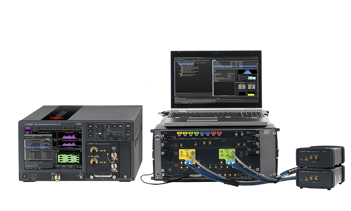 Cette plateforme s’appuie sur le testeur BERT (bit error ratio tester) M8040A, l’analyseur de communications numériques N1060A côté réception et les oscilloscopes Infiniium UXR côté émission. Des logiciels de test simplifient la mise en conformité selon les spécifications 802.3ck et PAM4 à 112Gbit/s.