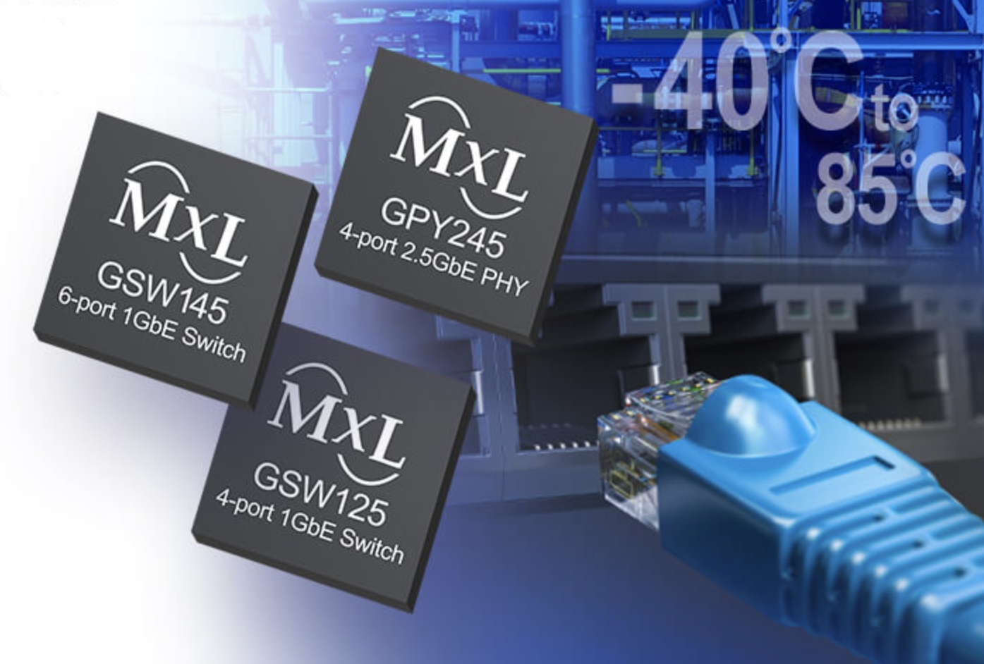 Les composants réseaux doivent souvent fonctionner dans des environnements difficiles : appareils d’extérieur, usines ou encore locaux exigus soumis à des températures élevées. C’est pour ces conditions de fonctionnement que MaxLinear a conçu ses derniers circuits Ethernet, qui supportent des températures allant de -40 à 85°C. Les GSW125 et GSW145 sont des commutateurs 1000BASE-T à deux et quatre ports, tandis que le GPY245 gère quatre ports PHY 2.5GBASE-T. Tous ces circuits sont encapsulés dans un boîtier MRQFN de 8x8mm.