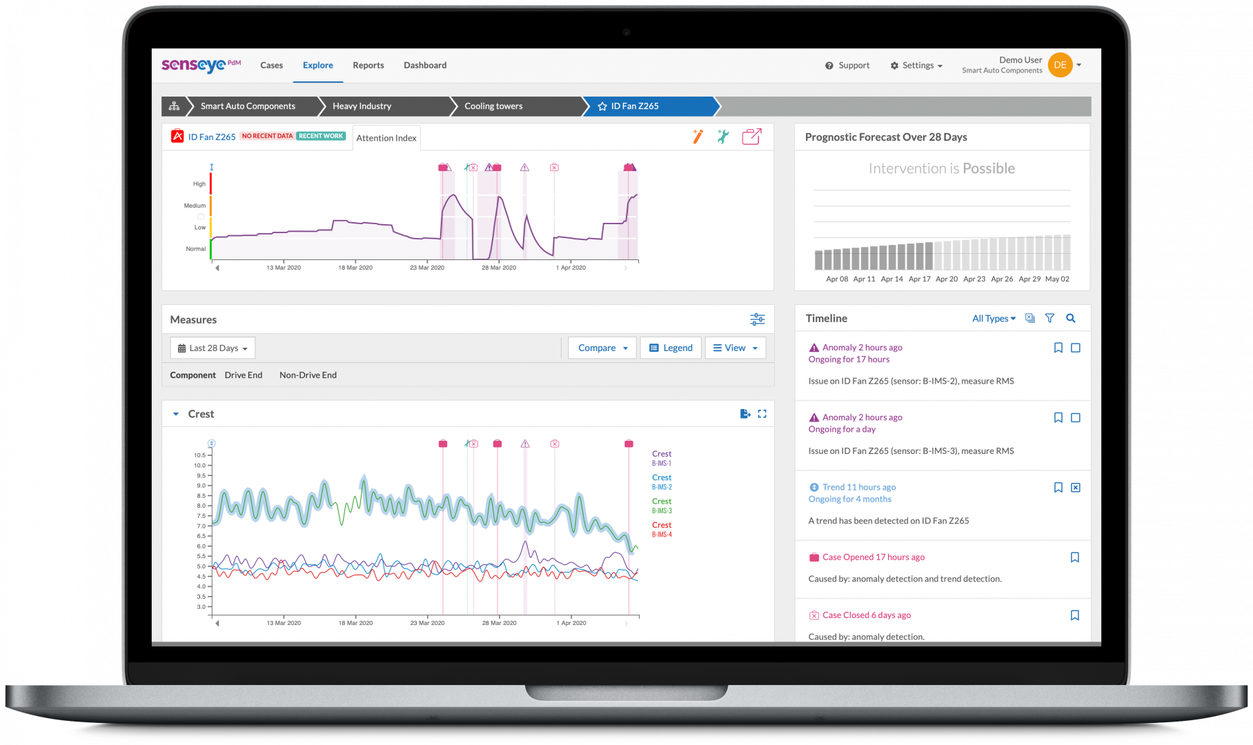 La plateforme PdM de Senseye peut s’associer à une infrastructure de machines inédite ou existante. En surveillant les paramètres clés (courant et vibrations notamment), le logiciel Senseye PdM peut déterminer l’état de santé des machines et confondre les signes de détérioration imminente pour aider les organisations. Selon Senseye (du japonais « Sensei » qui signifie « enseignant, maître » dans les arts martiaux), cela permet une meilleure disponibilité des machines, « d’atteindre et de dépasser les objectifs de durabilité », de contrôler des milliers de machines sur le globe, d’intégrer des systèmes clés et de garantir le retour sur investissement des clients.