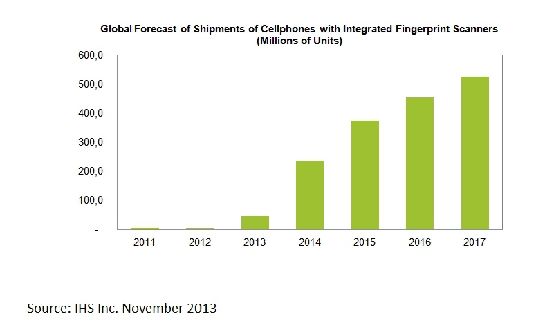 IHS table sur une explosion des ventes de téléphones portables pourvus d’un capteur d’empreinte digitales à l’instar de l’iPhone 5S.