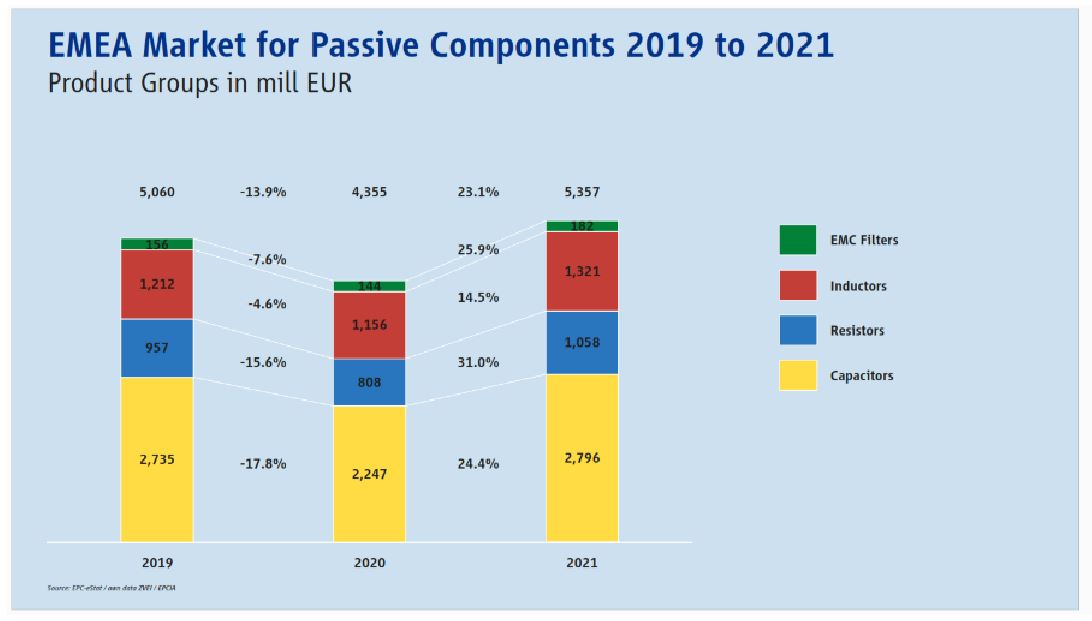 Le marché EMEA des composants passifs a bondi de 23,1% en 2021