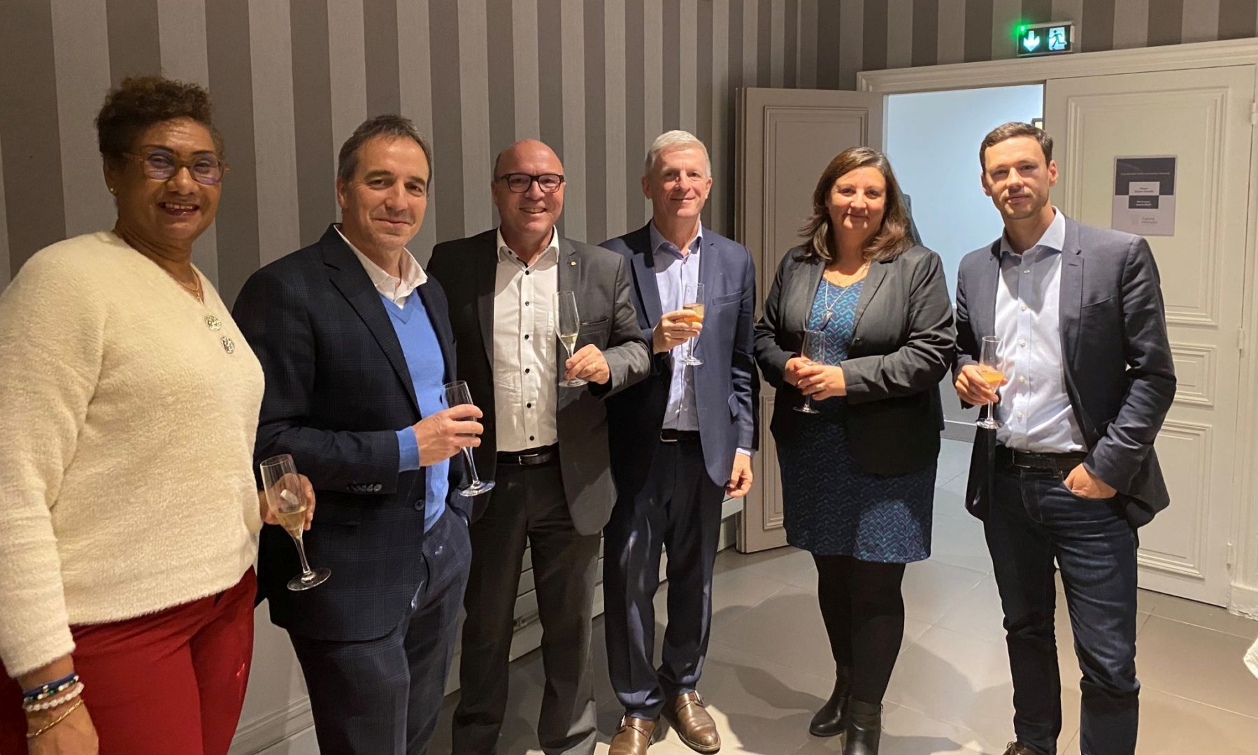 De gauche à droite : Véronique Cirédeck, responsable communication d'Acsiel ; Thomas Loos, président de Wurth Elektronik France ; Arnaud Ponthieux, responsable des ventes France/BeLux/Espagne de TDK ; Jean-Luc Estienne, vice-président de STMicroelectronics chargé des affaires publiques et du site de Paris ; Sandrine Beaufils, déléguée générale d'Acsiel ; Mathieu Fitamant, éditeur d'Electroniques.