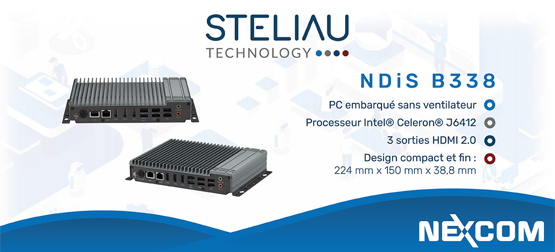 Représentée en France par Steliau Technology, la société Nexcom lance le calculateur NDiS B338, au design ultra fin, résistant à des températures élevées et pouvant être utilisé en extérieur, comme par exemple sur des kiosques de restauration rapide, des écrans de guichets, des arrêts de bus ou des panneaux d’informations numériques.