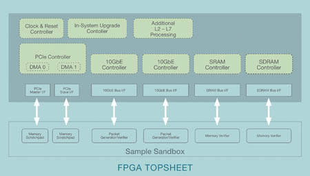 Cette solution matérielle et logicielle à base de FPGA permet à l’utilisateur d’enfouir ses applications directement dans les interfaces 10GbE.