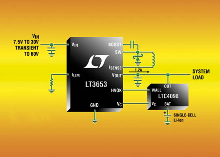 Destiné aux chargeurs de batteries, ce régulateur abaisseur de tension gère jusqu’à 1,2 A avec une limitation du courant de sortie programmable.