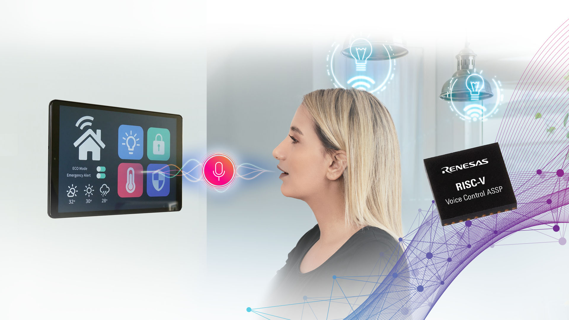 Afin d’accélérer la mise sur le marché, Renesas accompagne ce processeur d’un code d’application développé par le bureau d’études Cyberon, spécialisé en commande vocale, et l’intégrateur système Orbstar, tandis que Segger Microcontroller supporte le circuit avec son écosystème de développement embarqué. L’ensemble constitue donc une solution préprogrammée, capable de gérer plusieurs langues et d’offrir des fonctions comme le réveil personnalisé d’un appareil.