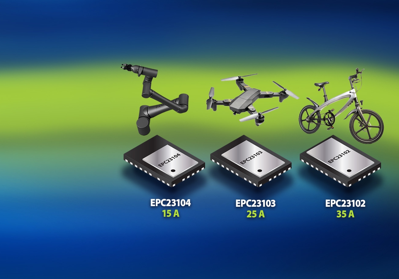 Les drones, les vélos électriques ou encore l’outillage sans fil sont dans le collimateur d’Efficient Power Conversion (EPC) aves ses derniers circuits de puissance 100V référencés EPC23104 (15A) et EPC23103 (25A), qui rejoignent l’EPC23102 (35A). Ces composants en nitrure de gallium (GaN) intègrent un étage de puissance en demi-pont avec transistors Fet symétriques, blocs de commande, de décalage de niveau et de charge bootstrap et interface numérique d’entrée. Ils sont proposés dans un boîtier QFN mesurant seulement 5×3,5mm et permettant l’évacuation thermique sur les deux faces. Les EPC23103 et EPC23104 sont vendus respectivement 3,75$ et 3$ par lots de 1000.