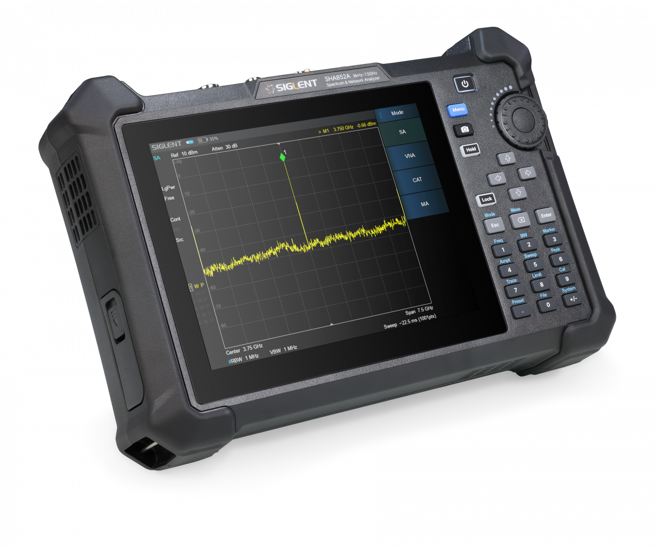 Le déploiement de la 5G et la multiplication des objets connectés créent de nouveaux besoins d’analyse de spectre, dans un environnement de plus en plus saturé d’ondes diverses et variées, et ces besoins nécessitent de plus en plus de sortir du laboratoire pour aller tester les équipements sur le terrain. Les fabricants d’appareils de mesure multiplient donc les analyseurs de spectre portable. C’est le cas aujourd’hui de Siglent, qui s’essaie à l’exercice avec le SHA850A. Cet analyseur de spectre balaie les fréquences comprises entre 9kHz et 7,5GHz, avec une sensibilité DANL démarrant à -165dBm et un bruit de phase en bande adjacente de -104dBc/Hz à 1GHz avec un décalage de 10kHz. Des performances « comparables à celles d’un appareil fixe » assure Siglent.