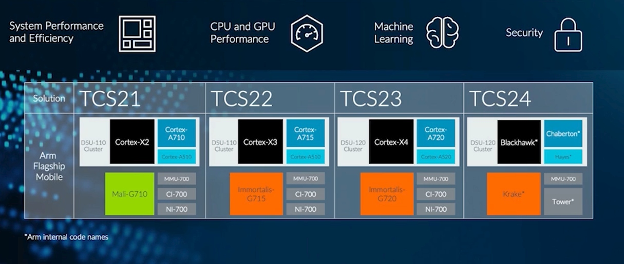 Arm a également lancé le Cortex-X4, qui lui aussi apporterait un regain de puissance de l’ordre de 15% par rapport au Cortex-X3. Sa consommation serait en outre inférieure de 40%, à process de fabrication égal. Ce X4 a déjà été échantillonné dans le process N3E de TSMC, et sera également disponible dans la technologie 18A d’Intel. Il sera typiquement associé à des Cortex-A720 et Cortex-A520, les derniers cœurs big/LITTLE d’Arm. L’ensemble du cluster CPU sera orchestré par le DSU-120 (DSU pour DynamIQ shared unit).