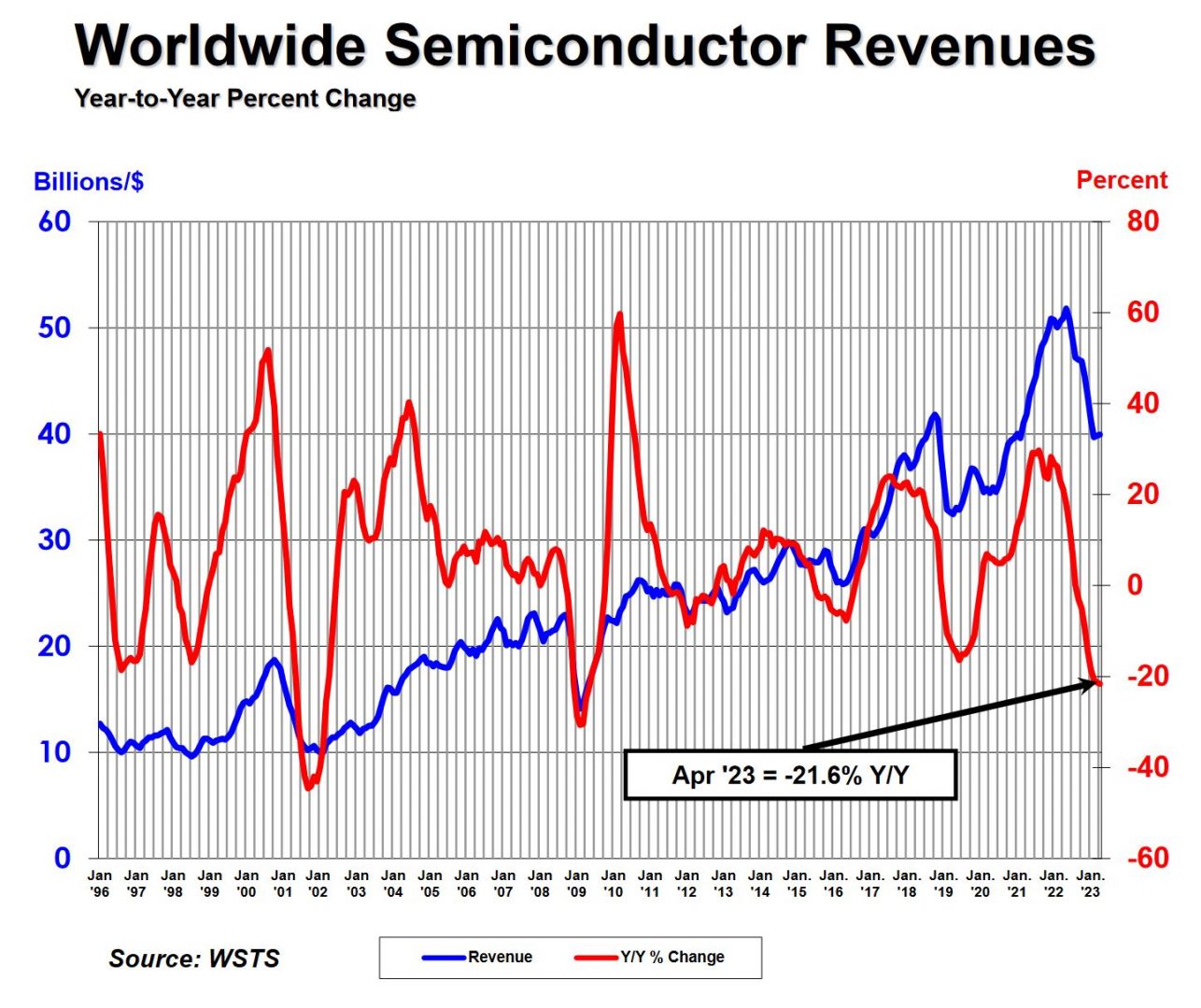 Toutefois, à long terme, le WSTS prévoit une baisse annuelle des ventes de composants de 10,3% en 2023.