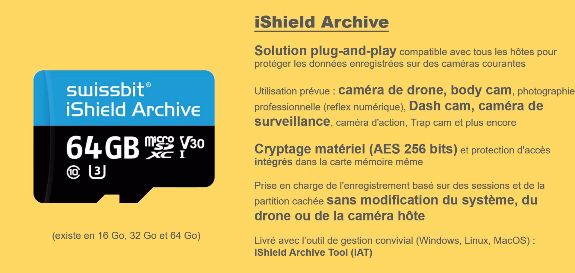Votre drone tombe en panne ou est intercepté avec des données sensibles ? Vous souhaitez protéger les données de votre bodycam (caméra piéton) contre des manipulations non autorisées ? Protéger vos données indépendamment de votre système d’enregistrement qui ne permet pas de cryptage adéquat ? Pour pallier ces contrariétés, le distributeur Mozaïk Storage propose la dernière solution de sécurité d’enregistrement vidéo plug and play iShield Archive de Swissbit.