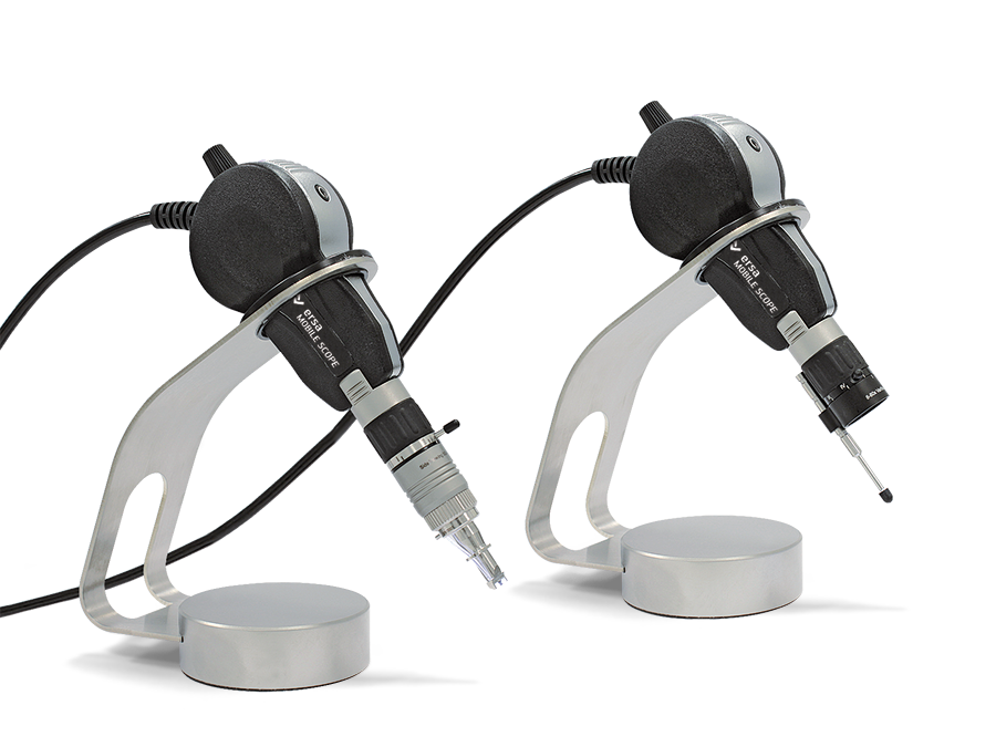 Offrant des mesures d’espace de 50 à 1500µm, il se destine à l’inspection optique et l’enregistrement d’images numériques, ainsi qu’aux tâches de mesure sur les joints de soudure des boîtiers à billes (BGA), μBGA, CGA (column grid array), CSP (chip-scale package), flip chip et et pas à pas sur les connexions THT (through-hole technology). Il autorise l’évaluation du remplissage du talon sur les composants à terminaisons QFP (quad flat package), SOIC (small outline integrated circuit) et autres, de la longueur de mouillage et du mouillage interne sur les appareils à terminaisons PLCC (plastic leaded chip carrier) et J. Ses dimensions sont de 114x36x51mm pour un poids de 210 grammes. Son système optique (déflexion prismatique à 90°) intégré avec caméra dispose d’une source lumineuse à Led intégrées et à intensité variable, qui peut revêtir une lumière froide en option.