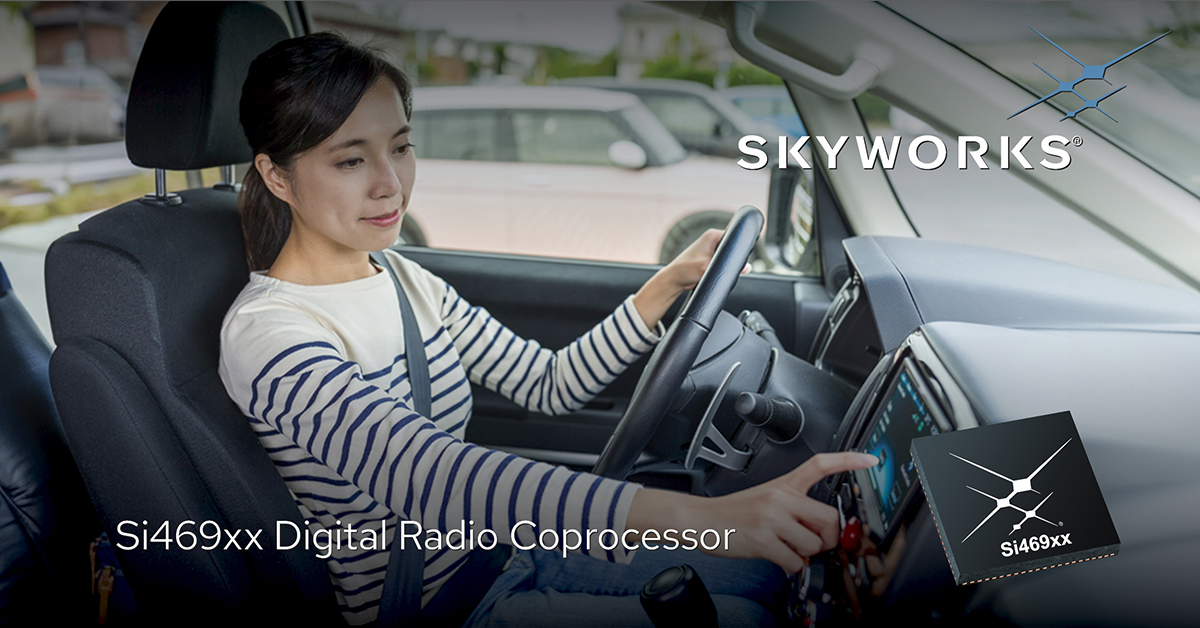 D’après des études d’Inside Radio et WorldDAB, en 2022, 59% des véhicules vendus aux Etats-Unis étaient équipées d’un récepteur HD Radio et 96% des voitures neuves commercialisées en Europe étaient, elles, compatibles avec les émissions DAB+. Cette popularité des émissions radio numériques dans l’automobile a poussé Skyworks Solutions à développer les Si469xx, une famille de coprocesseurs radio numériques capables de décoder jusqu’à quatre canaux exploitant les technologies HD Radio, DAB/DAB+, DRM (pour flux AM et FM) et CDR.