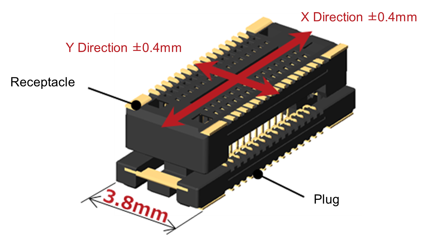Avec une largeur de 3,8mm pour une marge de +/-0,4mm, ces BM54 sont annoncés par le Japonais comme étant les plus compacts de leur catégorie. Dans le sens de la hauteur, la tolérance atteint +/-0,3mm pour les modèles de 3mm d’épaisseur et +/-0,4mm pour ceux de 3,5 à 4,5mm. Supportant des températures maximales de 125°C, les BM54 permettent par exemple de véhiculer des signaux sur des liaisons PCIe Gen4 et MIPI D-PHY. Le premier modèle disponible en volume est haut de 3mm et comporte 30 contacts. Sont également prévus des versions à 10, 20, 30 et 40 contacts mesurant 3, 3,5, 4 et 4,5mm d’épaisseur. Hirose envisage en outre de lancer des connecteurs flottants similaires ciblant des applications grand public et industrielles.