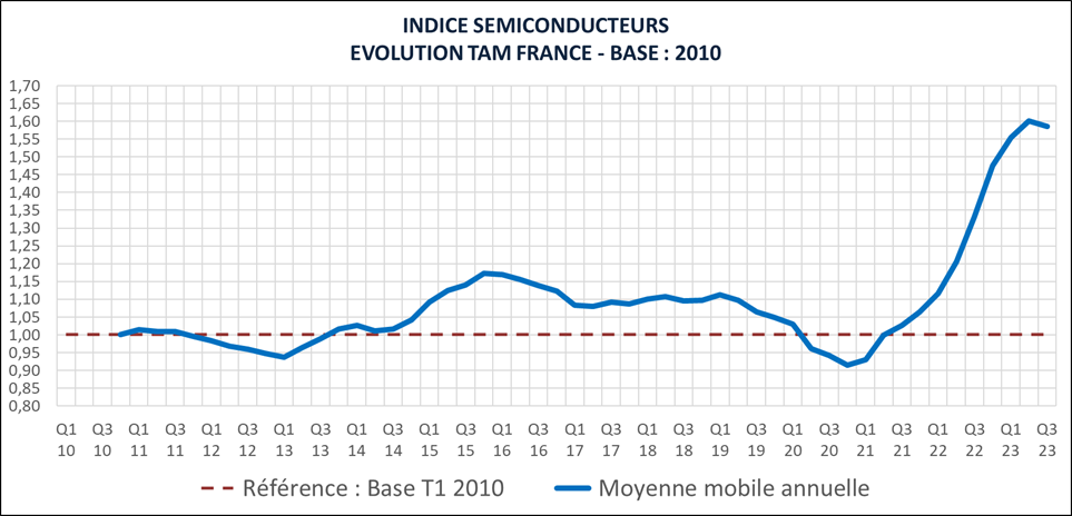 Le marché français des puces a diminué de 13% en glissement séquentiel pour atteindre 598M€ au 3e trimestre 2023, selon Acsiel Alliance Electronique. Par rapport au 3e trimestre 2022, il enregistre une baisse de 5%.