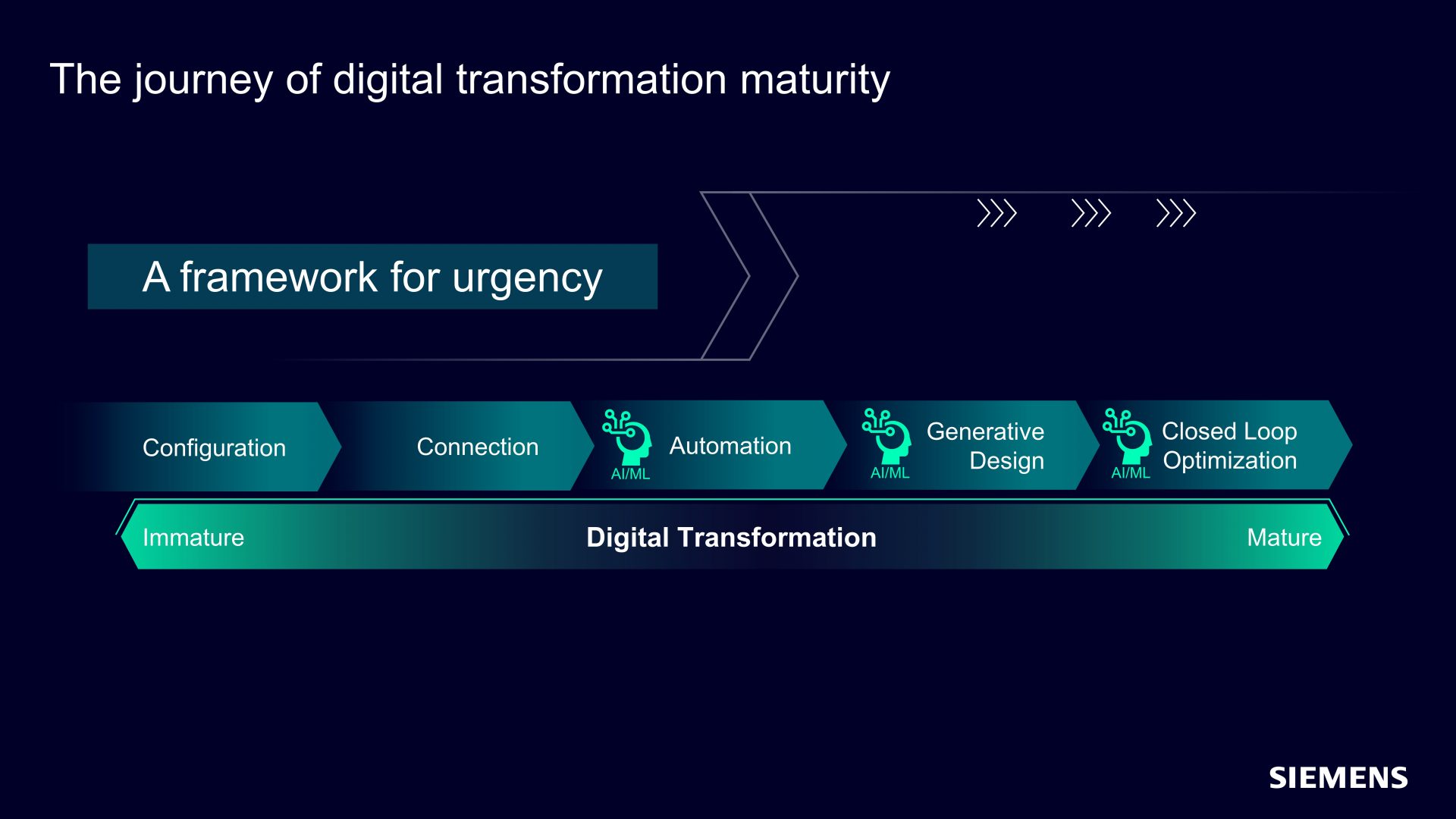 De nombreuses entreprises du secteur de l’électronique sont bloquées aux deux premières étapes : configuration et connexion. La configuration est le passage d’un cadre de données basé sur des documents à un cadre de données basé sur des modèles. La connexion est l’étape où les entreprises commencent à briser les silos et à connecter les données basées sur des modèles entre tous les domaines. Bien qu’il soit essentiel de franchir ces étapes pour tirer pleinement parti de la transformation numérique, les entreprises doivent s’efforcer d’atteindre des niveaux plus élevés de numérisation, en particulier pour pouvoir exploiter la puissance croissante de l’IA.