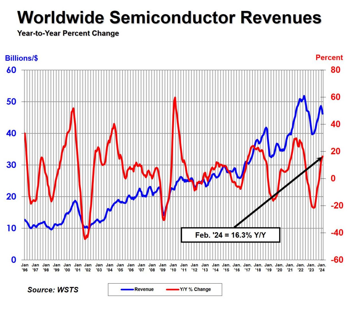 Selon les données du WSTS (World Semiconductor Trade Statistics) relayées par la SIA, les ventes mondiales de semi-conducteurs ont reculé de 3,1% en février par rapport au mois de janvier, à 46,17Md$.