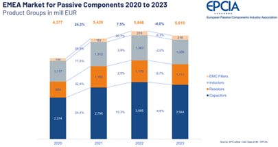 L’association européenne de l’industrie des composants passifs (EPCIA) a dressé un état des lieux du marché depuis 2020 jusqu’à 2023.