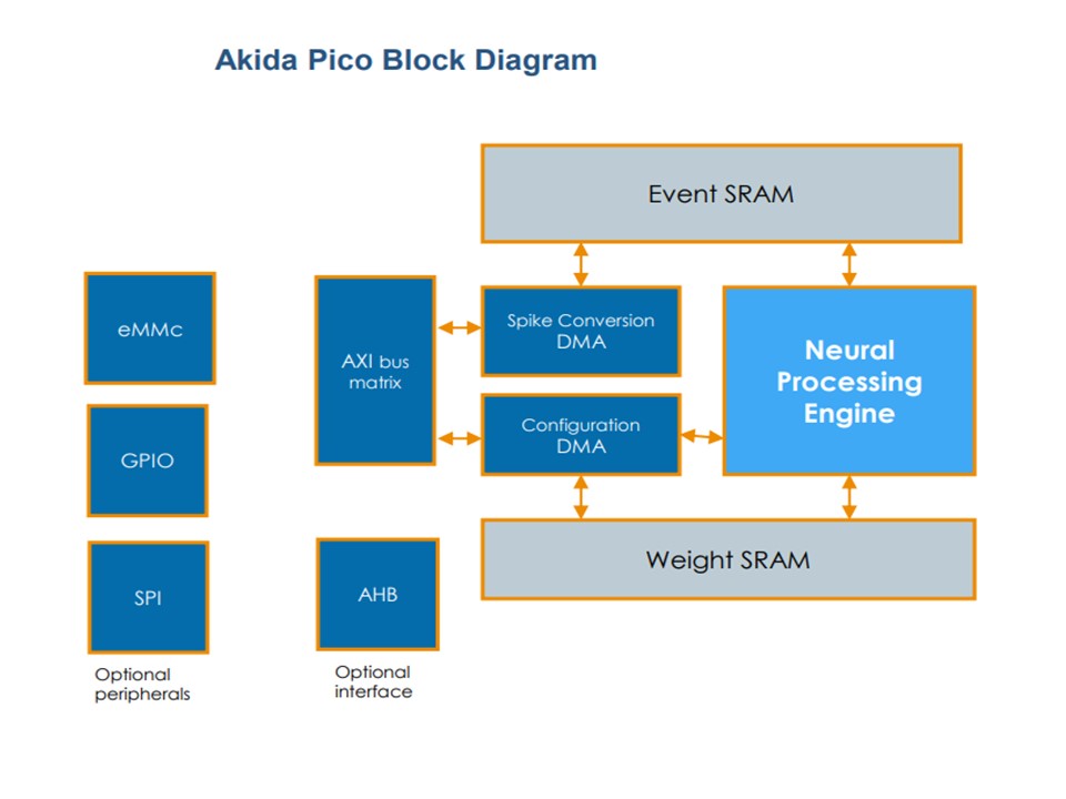Pionnier des processeurs neuromorphiques, BrainChip vient de lancer Akida Pico, annoncé comme le coprocesseur d’accélération IA le plus frugal de l’industrie. Destiné aux objets connectés les plus compacts, il reprend le moteur de traitement de l’Akida2 mais consomme moins de 1mW : de quoi, par exemple, réveiller le microcontrôleur ou processeur principal en cas d’événement (détection vocale, mot de passe, détection de présence, etc.) tout en écartant les fausses alertes. Akida Pico est compatible avec le logiciel MetaTF de BrainChip qui compile et optimise les réseaux neuronaux créés avec TensorFlow/Keras ou Pytorch.