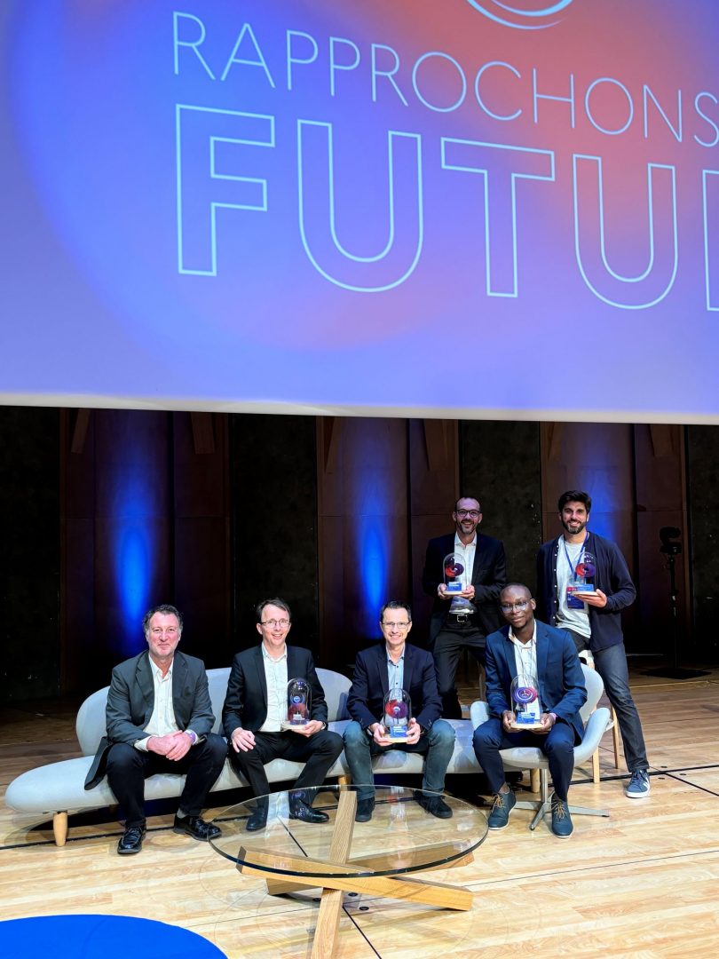 De gauche à droite : Laurent Vila (Nellow), Jean-Philippe Attané (Nellow), Philippe Robert (NG.Sense/iNGage), Poutoum Samire (Alcasun), Benoit Larrat (Therasonic) et Florian Picard (improveHeat) © CEA