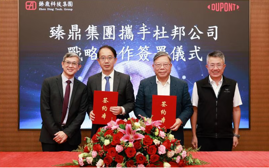 DuPont et Zhen Ding Technology Group ont conclu un accord de coopération stratégique afin de stimuler la R&D en termes de circuits imprimés « haut de gamme ». Il englobera les performances des matériaux, mais également la promotion du développement durable dans le secteur de l’électronique. Par ailleurs, ils comptent approfondir leur coopération dans le domaine de la fabrication intelligente et de la gouvernance d’entreprise.
