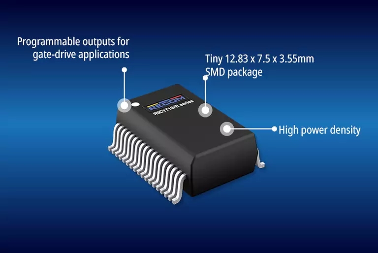 Recom a étoffé son catalogue de modules montables en surface, optimisés pour la commande de grille et délivrant chacun une ou deux sortie régulées, programmables de manière symétrique ou asymétrique afin de s’adapter aux différentes exigences de rails de tension des transistors IGBT et Mosfet et des montages en cascode en silicium, carbure de silicium ou nitrure de gallium. A titre d’exemple, le R12C2T25/R délivre +18/-5V pour les Mosfet SiC, à partir d’une alimentation comprise entre 9 et 18V.