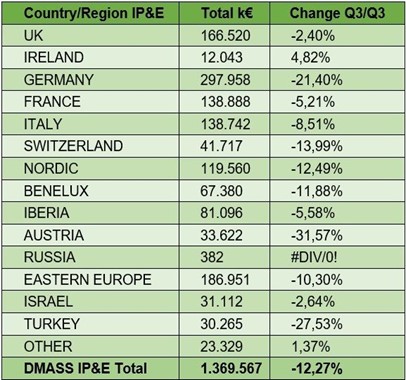 Le pire semble est être toutefois passé pour le secteur IP&E : le ralentissement s’est poursuivi mais à un rythme beaucoup moins soutenu, excepté pour l’Allemagne, l’Autriche et la Turquie qui affichent des baisses respectives de 21,4%, 31,7% et 27,53%. A contrario, la France (-5,21% à 138,8 millions d’euros), l’Espagne (-5,58%) et le Royaume-Uni (-2,4%) contiennent mieux leurs replis, alors que l’Irlande enregistre +4,82%. En termes de produits, les passifs ont subi une baisse plus importante (-19,32%) que les composants électromécaniques (-7,16%) et les alimentations électriques (-13,43%).